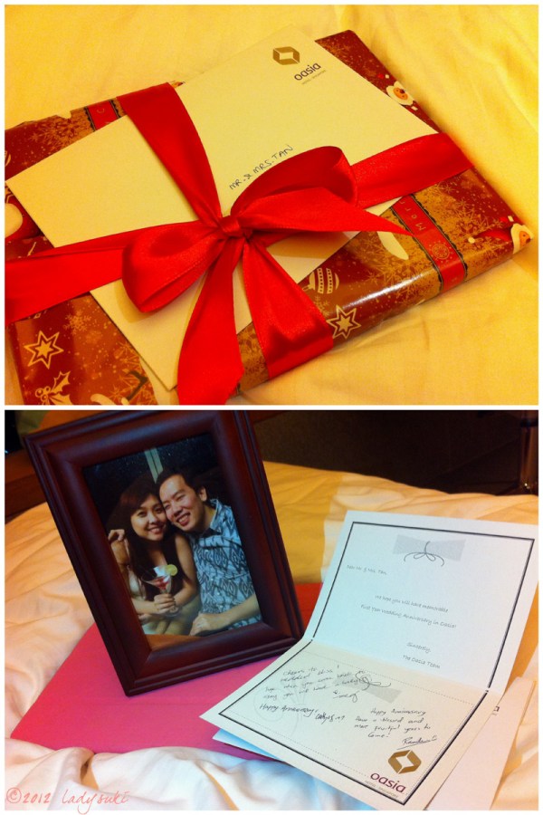 Later of the night, while watching movie on ipad, the doorbell rang, we received a photo framed and wrapped up beautifully, with a sincere hand-written card and hand-signed greetings!! I really love such details the hotel staff looked into, keep it up, Oasia.